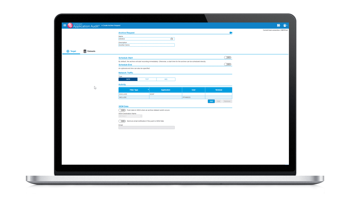 Application Audit reduces your dependency on specialized mainframe knowledge. Security personnel with no mainframe experience can set session recording parameters, enable the data to be delivered to SIEM systems, and review recording activities.