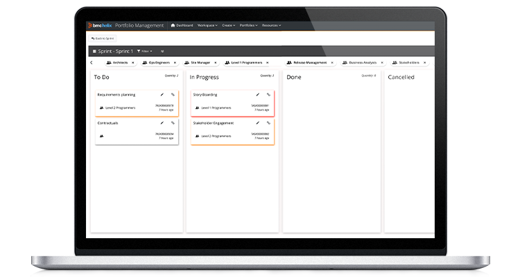 Whether you're delivering new products, services, or maintenance programs, BMC Helix for Portfolio Management enables you to execute projects using various agile methodologies, including popular ones like Scrum and Kanban, as well as the Waterfall method or your preferred solution mix.