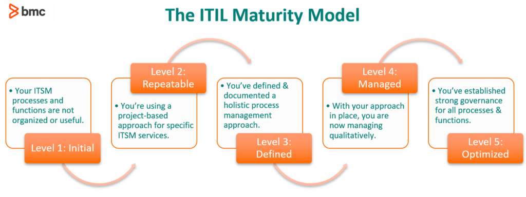 For example, Gartner has an AI maturity model and ITIL® has developed a maturity model for service management capabilities: