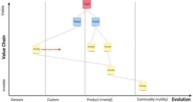 “Take your value chain and plot the components along an evolution axis covering genesis, custom-built, product (+rental), and commodity (+utility).”
