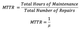The frequency of successful repair operations performed on a failed component per unit time. It is usually denoted by the Greek letter μ (Mu) and is used to calculate the metrics specified later in this post. Repair rate is defined mathematically as follows: