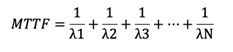 - For parallel connected components, MTTF is determined as the reciprocal sum of failure rates of each system component.