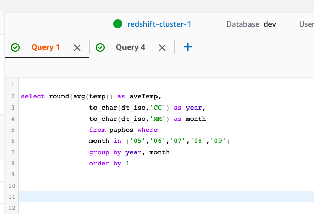 For this tutorial, we use a table of weather data. (See more on loading data to Amazon Redshift from S3.) This is 20 years of weather data for Paphos, Cyprus. It has four columns: