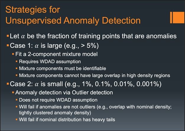 From Dr. Dietterich’s lecture slides, the strategies for anomaly detection in the case of the unsupervised setting are broken down into two cases: