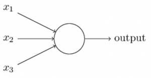 Michael Nielsen lays this out in his book like the diagram below. All of these inputs (x1, x2, x3) are fed into a perceptron. That then makes a yes or no decision and passes it onto the next perceptron for the next decision. This process repeats until the final perceptron. At which point we know what the handwriting is or whose face we are looking at.