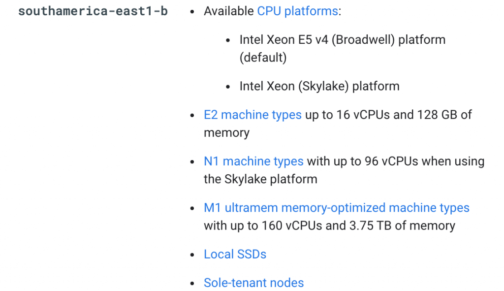 Zone: South America East1-B