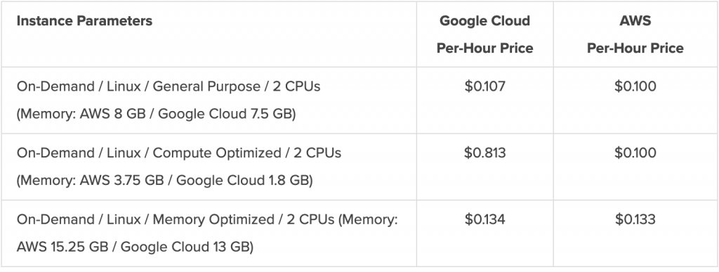 Here’s a brief comparison for Google prices vs AWS prices for CPU and storage, for instance: