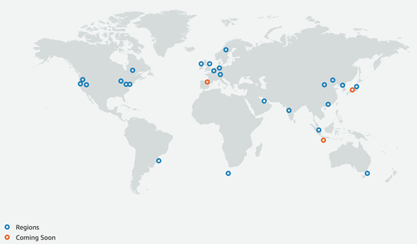 Here are the AWS regions around the globe: