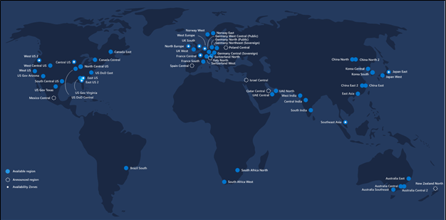 Availability regions are the geographic locations of the cloud data centers. Different regions offer different service qualities in terms of latency, solutions portfolios, and costs. For the large providers, their availability regions exist across the globe.