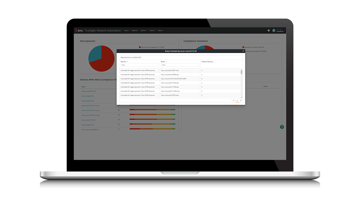 - Integrate to BMC Discovery and CMDB to manage network security and compliance by business service