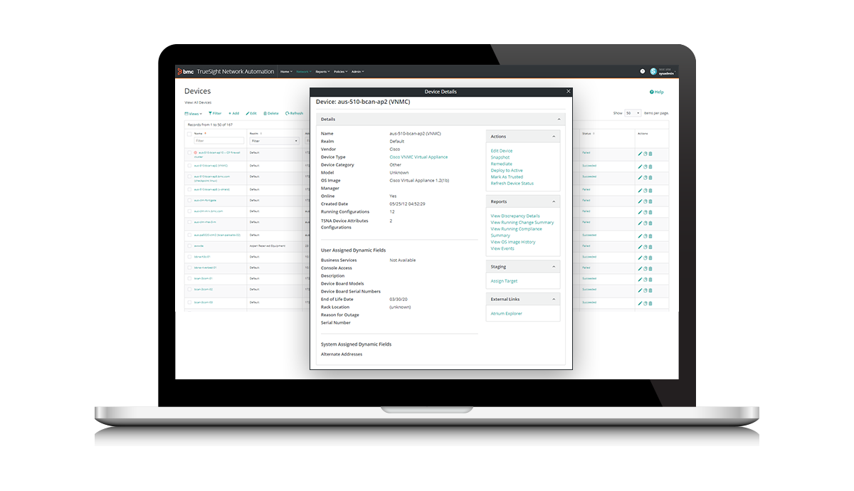 - Reduce mean-time-to-resolution (MTTR) by up to 80%, by logging every change, whether or not made by TrueSight Automation for Networks